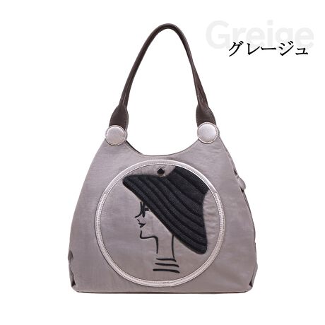 ・正面ポケットになったサークルに、帽子を被った女性の横顔を刺繍したエレガンスなバッグです。