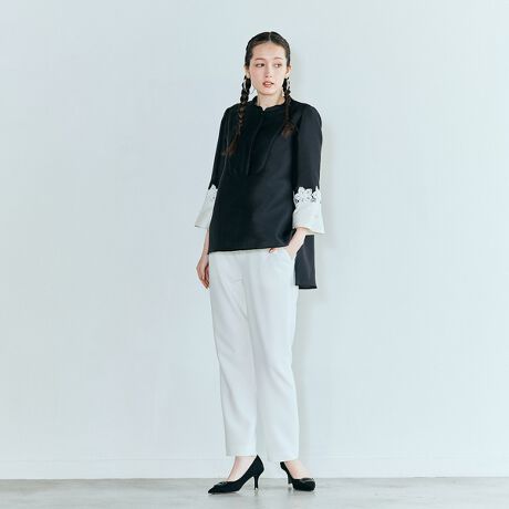 コンサバティブになりすぎず、構築的なシルエットと手の込んだディティールで織りなすクチュール感のあるアイテム。