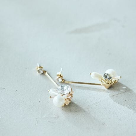 ・ビジューとパールのモチーフが揺れるロマンティックなピアス。