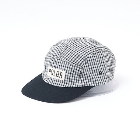 POLERの定番として人気を博している5パネルキャップのクラウンにチェック素材をあしらいアップデート。チェック柄はほどよく主張しながらもコーデに馴染みやすく、デニムやミリタリー、ストリートスタイルまで幅広く合わせられます。日常使いの定番として長く愛用できるデザインです。