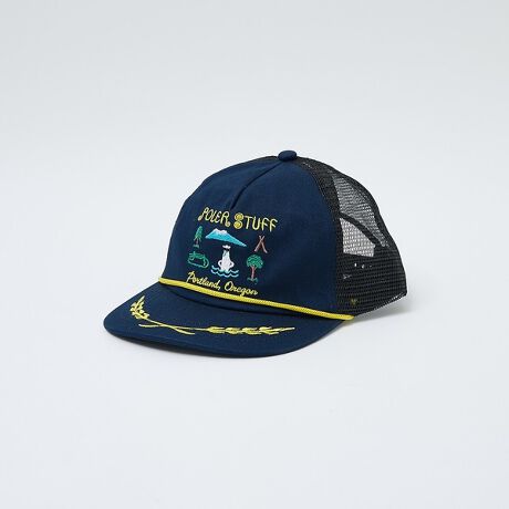 フロントに山やアニマルなどキュートな刺繍をあしらったアウトドアテイスト満点なデザイン。ツバ裏にはお馴染みのCAMP VIBESのメッセージをプリントしつつ、飾り紐をあしらいレトロな雰囲気に。スナップバック仕様なので性別を問わず幅広くお使い頂けます。