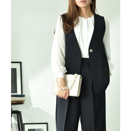 ジレはトレンド感のあるきちんとスタイルが演出でき、オールシーズン着まわせる優秀なアイテムです。ブラウスはもちろん、夏にはカットソー、冬にはリブニットなどコーディネート次第で大活躍間違いなしです◎セットアップとしてオフィスでも、結婚式などのフォーマルシーンでも活躍するアイテムです。シンプルなデザインながら、後のフリルで女性らしさをプラス◎シーンやコーディネイト次第で幅広い着こなしが楽しめます。