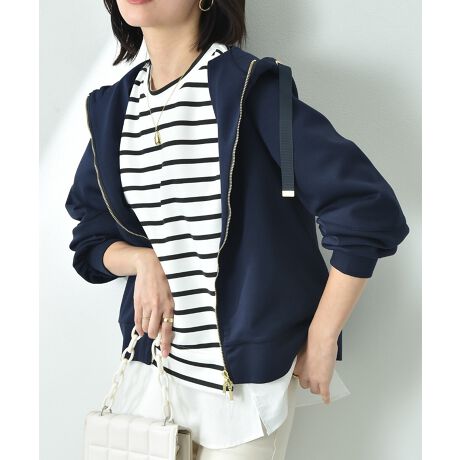 本体は肌さわりの良く上質なダンボールニット素材を使用。優しく包まれるような着心地がポイントです。一見カジュアルなアイテムですが、コンパクトなすっきりしたシルエットが魅力です。袖に切替を入れランタンスリーブでモードな印象にも。他のシンプルパーカーとさりげない差がつくお勧めな1枚です。また両開きのゴールドファスナーを使用し、高級感ある大人カジュアルコーデにきまります。