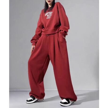 【トレンドのカレッジロゴ刺繍 セットアップ トレーナー&パンツセット】