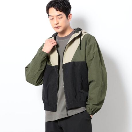 マットで落ち着いた表情のフルダルナイロン素材を使用した、配色切り替えがアクセントのフーディブルゾン。