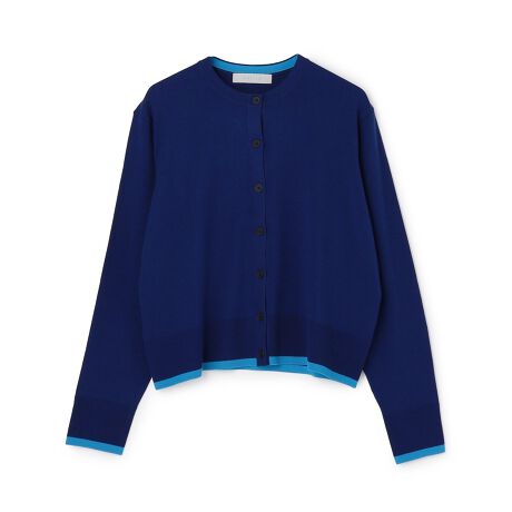 ■デザイン一枚で着映えるバイカラー配色の、クルーネックカーディガン。袖口、裾の配色ラインに加えて、衿、前立ての裏側にも配色使いをしているので、一枚でも映えるアイテムです。程よい肉厚さを持つ素材なので、季節の変わり目や気温の変化にも対応しやすく、気軽に羽織れるアイテムです。