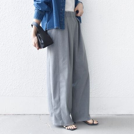 夏はTシャツ合わせで軽やかに、季節が進んだらヘアリーなニットを合わせても表面がクリアなので毛が付きにくく、ストレスなくスタイリングを楽しめます。