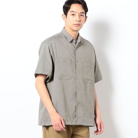 麻のような清涼感ある表面感と肌触りを、扱いやすいポリエステル素材で表現したリネンライク半袖シャツ。