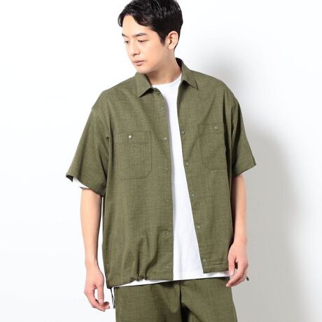 麻のような清涼感ある表面感と肌触りを、扱いやすいポリエステル素材で表現したリネンライク半袖シャツ。