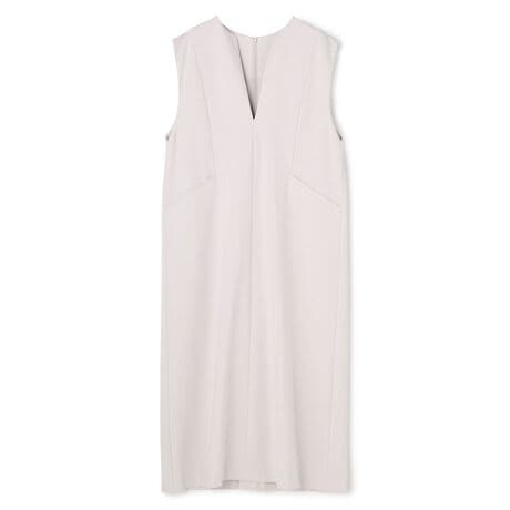 すっきりとしたIラインシルエットに、深めのキーネックが程よい抜け感を演出してくれるジャンスカ。やや高めの位置にのポケットは、自然にスタイルアップを叶えてくれます。バックスリット入りで足さばきもよく、着用感もラクに仕上がっています。