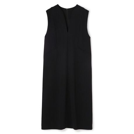すっきりとしたIラインシルエットに、深めのキーネックが程よい抜け感を演出してくれるジャンスカ。やや高めの位置にのポケットは、自然にスタイルアップを叶えてくれます。バックスリット入りで足さばきもよく、着用感もラクに仕上がっています。