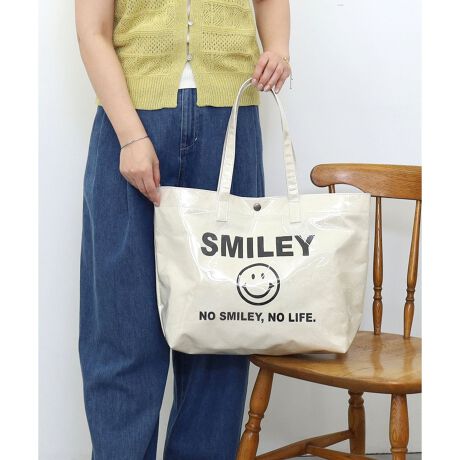 軽くてビニルが夏らしいSMILEYプリントビッグトートバッグ