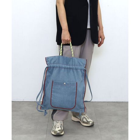 デニム素材を使ったカジュアル巾着トートバッグ