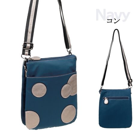 水玉のようなモチーフ、ナイロン本体の表面にメタリックなサークル状の合皮を引っ張り付けたお洒落なポシェットです!