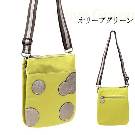 水玉のようなモチーフ、ナイロン本体の表面にメタリックなサークル状の合皮を引っ張り付けたお洒落なポシェットです!