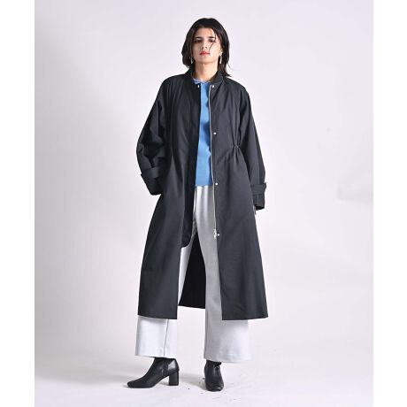 ややツヤのあるナイロンポリエステルツイルで仕立てたロングコート。