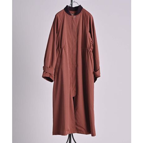 ややツヤのあるナイロンポリエステルツイルで仕立てたロングコート。