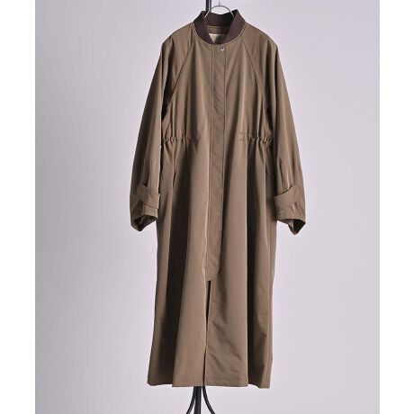 ややツヤのあるナイロンポリエステルツイルで仕立てたロングコート。
