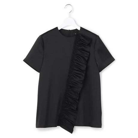 【APPLAUDIR】クリアダブルサテン フリルデザイン ブラウス