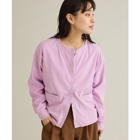 リングドットのメタルボタンと畝のある表面感がさりげないアクセントになり、胸元のポケットが実用性と表情をプラスします。