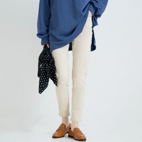 脚に沿うスキニーシルエットで、すっきりとした美脚ラインを演出。