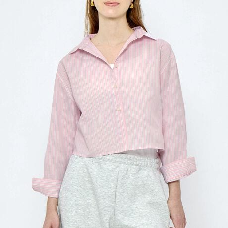 バランスよく着こなせる、トレンド感のあるクロップド丈オックスシャツ