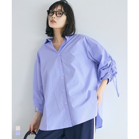 袖に施したシャーリングデザインがポイントの、さりげなく着映える一枚。