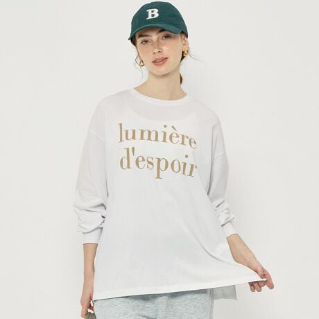 ・無地ボトムスと合わせてロゴを主役にしたスタイリングに