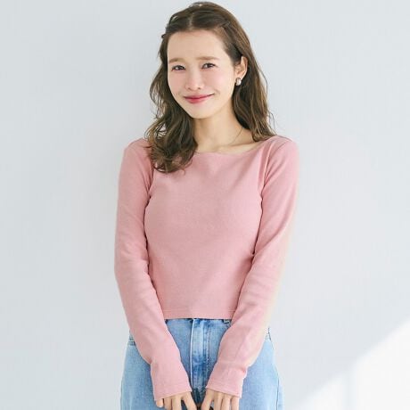 首元をすっきりと見せる、大人っぽい印象のボートネックリブTシャツ