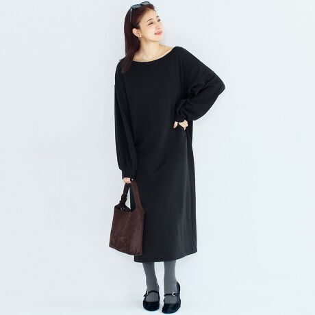 オフショルダーとしても、通常のネックラインとしても着用できる2WAY仕様の裏毛ワンピース。