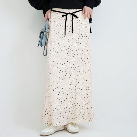 ウエストにはリボンをあしらい、さりげない可愛らしさをプラス。