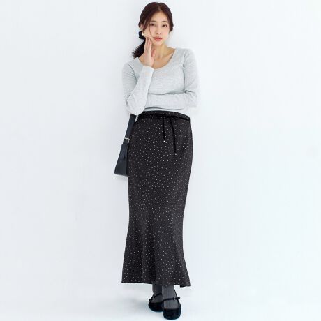 ブラウスやシャツと合わせれば、フェミニンで落ち着いた印象にも。