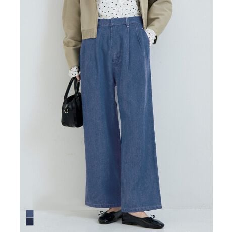 落ち感のある素材で、きれいめにも使えるデニムタックパンツ