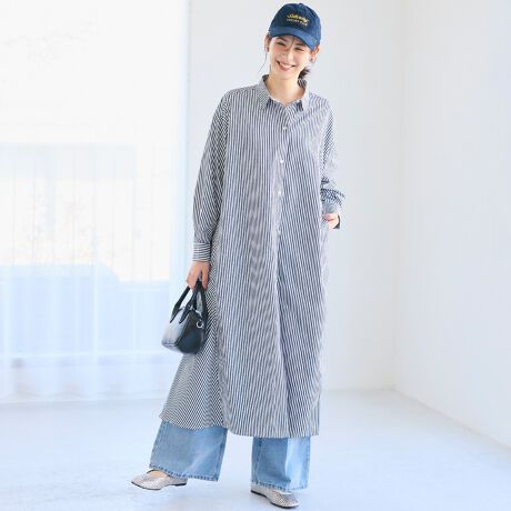 一枚で存在感のある、ストライプ柄シャツワンピース