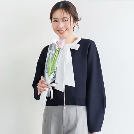 デイリーのお出かけから特別な日まで、きれいめに着られるニットブルゾン