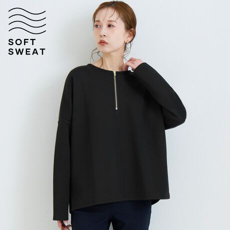 ・フロントのゴールドジップが、スウェットに上品さをプラス