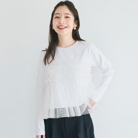・シルキータッチ素材にチュールをドッキングした、華やかなデザイン
