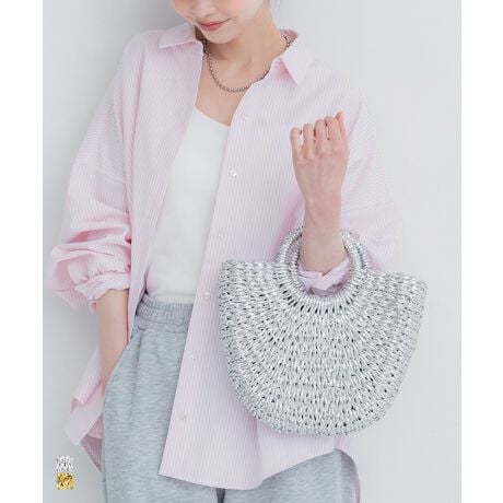 カゴバッグのようなフォルムに、ラメ素材でモード感をプラス。