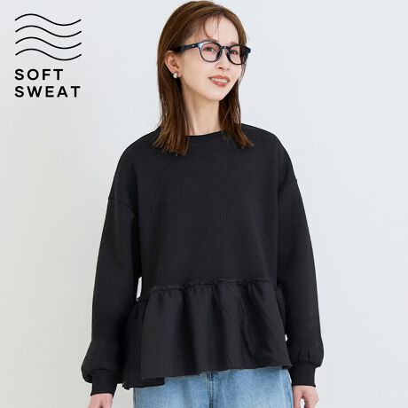 ・スウェットにチュールをドッキングした、異素材ミックスデザイン