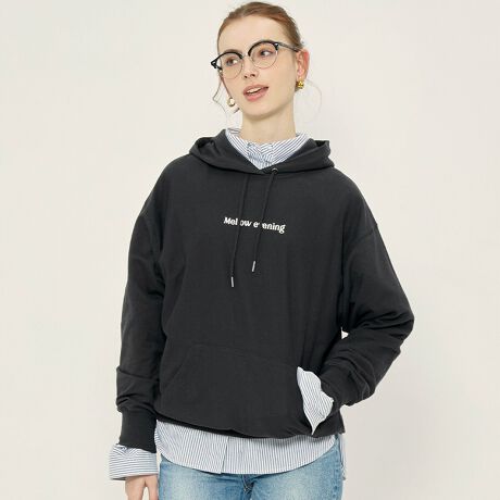 フロントに施した刺繍ロゴがさりげないアクセントになる、ミニ裏毛素材のプルパーカー。