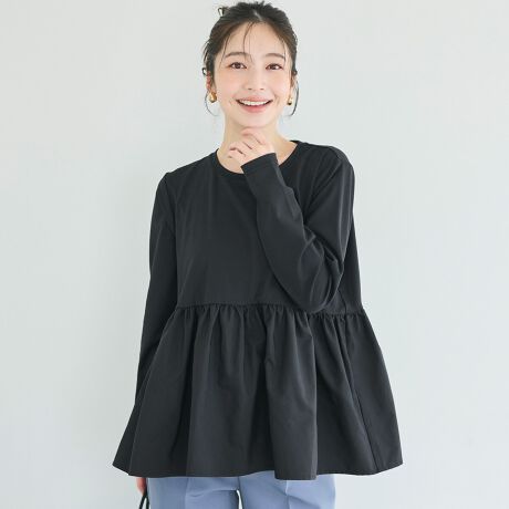 一枚で着映えする異素材切り替えトップス