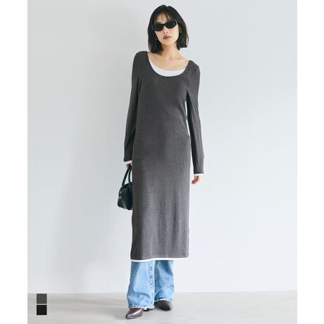 1枚で重ね着風、柔らかリブレイヤードワンピース