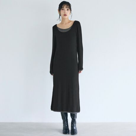 1枚で重ね着風、柔らかリブレイヤードワンピース