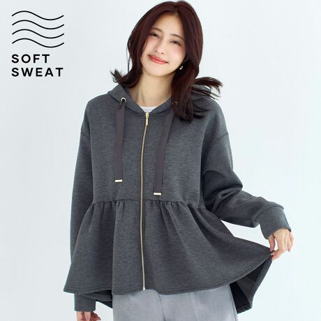柔らかく着心地の良い、ソフトスウェットフレアパーカー