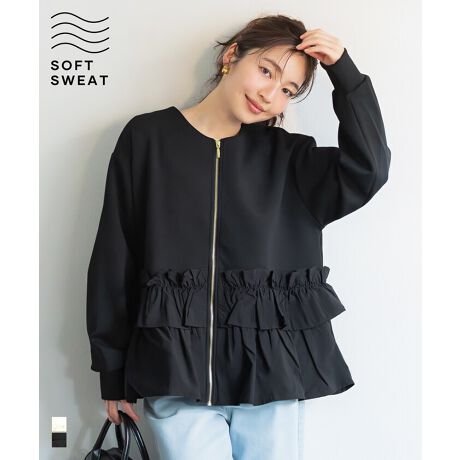 マルイウェブチャネル   /   コカ   /   トップス   /   パーカー   /   ソフトスウェット異素材フリルパーカー 全2色