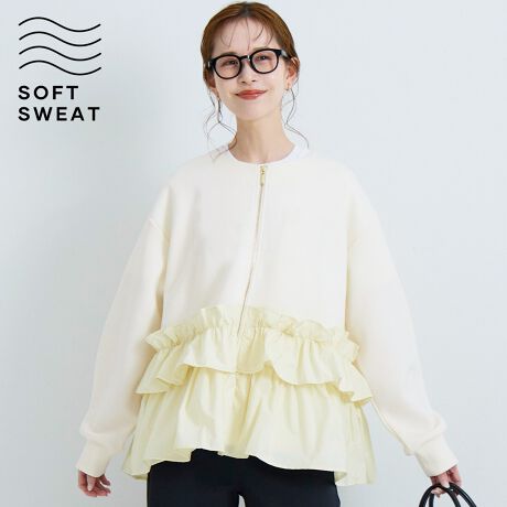 ウエスト切り替えのフリルで、立体感のあるシルエット。