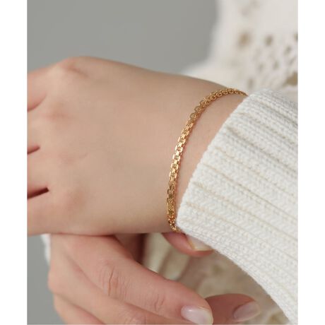 時計やほかのブレスレットとのレイヤードにも自然に馴染む万能なアイテムです。