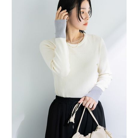配色デザインで、シンプルなのに印象的ベーシックなデザインに、袖の配色がさりげないアクセントを添えるニットです。細リブ仕様で縦ラインを強調し、自然とすっきり見せてくれます。クルーネックは顔周りをやわらかく見せ、上品な雰囲気をプラスします。アンチピリング素材を採用しているため、お手入れが簡単で、デイリーに安心して着用できます。程よい厚みでロングシーズン活躍し、コートやジャケットのインナーとしてもおすすめです。カジュアルからきれいめまで幅広いコーディネートに対応でき、忙しい毎日でも迷わず選べる一枚です。着心地の良さとデザイン性を兼ね備えた、頼れるアイテムです。透け感[なし]