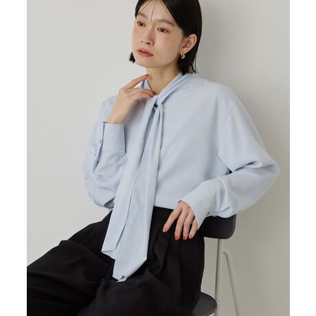 上品な落ち感と柔らかな着心地がポイントのタイブラウス。身頃は程よくゆとりのあるサイジングで、ナロータイは結び方次第で表情を変えられます。ジャケットにパンツやスカートを合わせたオフィススタイルや、オケージョンシーンにも対応できる一着です。