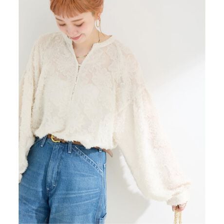 立体感のある表情豊かなカットジャガード素材を使用した透け感のあるアイテム。